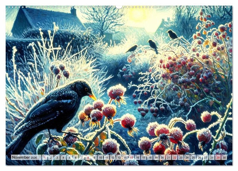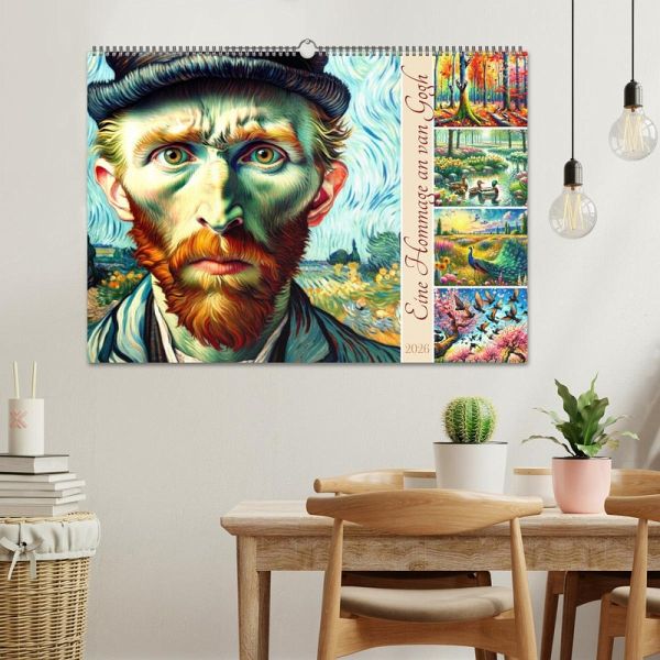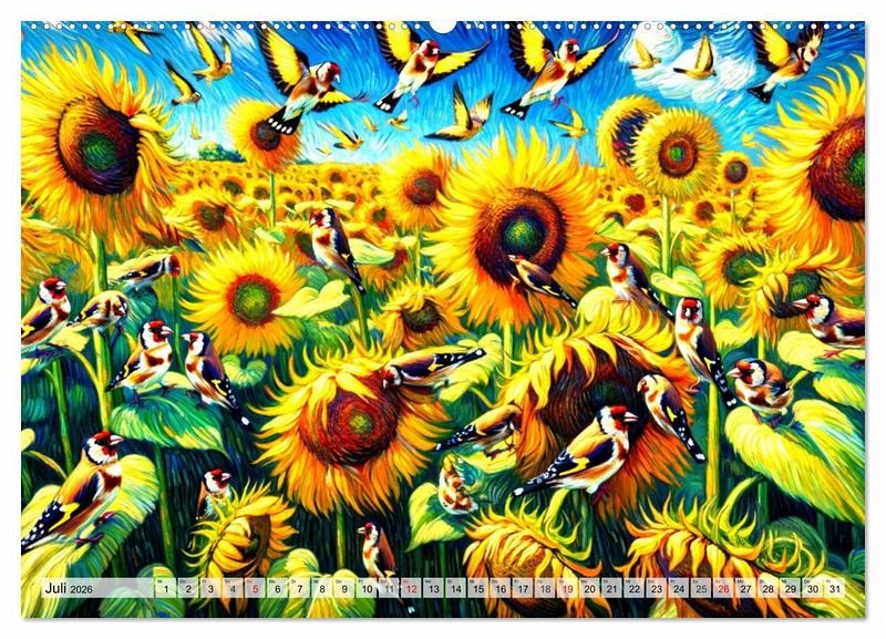 Tauchen Sie ein in eine Welt, in der sich die Lebendigkeit der Natur mit der Brillanz Vincent van Goghs vereint. Dieser einzigartige Kalender präsentiert Monat für Monat meisterhaft gestaltete Szenen, die Vögel und Blumen in van Goghs unverwechselbarem Stil einfangen. Jedes Bild ist ein Kunstwerk für sich, lebendig und ausdrucksstark, und bringt die Schönheit der Jahreszeiten zum Leuchten. Von der stillen Eleganz eines winterlichen Rotkehlchens bis zur prächtigen Farbenpracht eines Sommerlavendelfeldes - jeder Monat entführt Sie in eine andere Szene, die sorgfältig ausgewählt und liebevoll im Stil dieses großen Meisters der Kunst nachempfunden wurde. Ein täglicher Begleiter, der die Sinne erfreut und den Geist belebt, erstellt mit modernster KI Technologie.