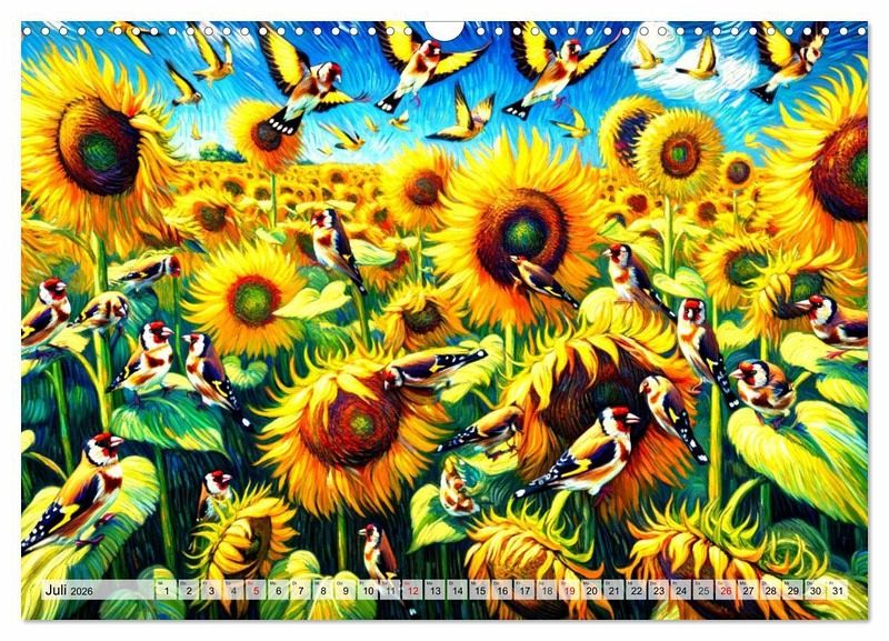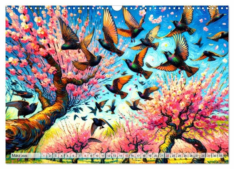 Tauchen Sie ein in eine Welt, in der sich die Lebendigkeit der Natur mit der Brillanz Vincent van Goghs vereint. Dieser einzigartige Kalender präsentiert Monat für Monat meisterhaft gestaltete Szenen, die Vögel und Blumen in van Goghs unverwechselbarem Stil einfangen. Jedes Bild ist ein Kunstwerk für sich, lebendig und ausdrucksstark, und bringt die Schönheit der Jahreszeiten zum Leuchten. Von der stillen Eleganz eines winterlichen Rotkehlchens bis zur prächtigen Farbenpracht eines Sommerlavendelfeldes - jeder Monat entführt Sie in eine andere Szene, die sorgfältig ausgewählt und liebevoll im Stil dieses großen Meisters der Kunst nachempfunden wurde. Ein täglicher Begleiter, der die Sinne erfreut und den Geist belebt, erstellt mit modernster KI Technologie.
