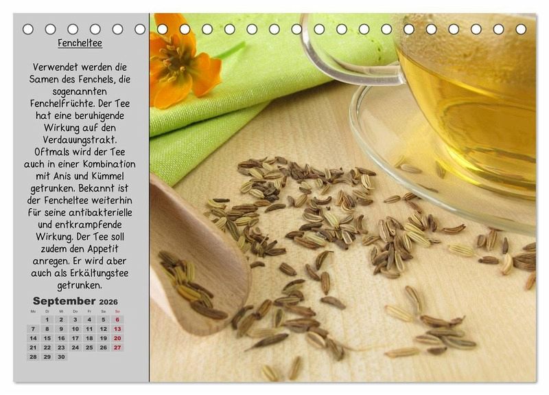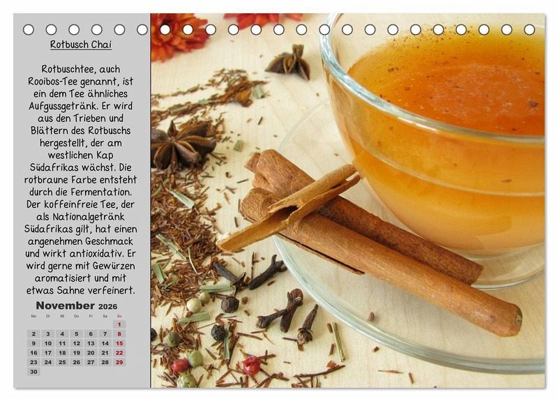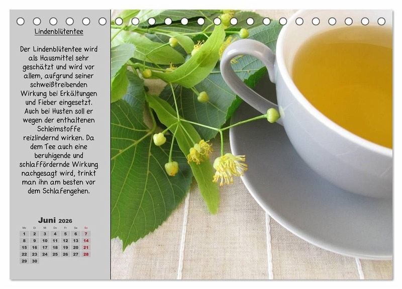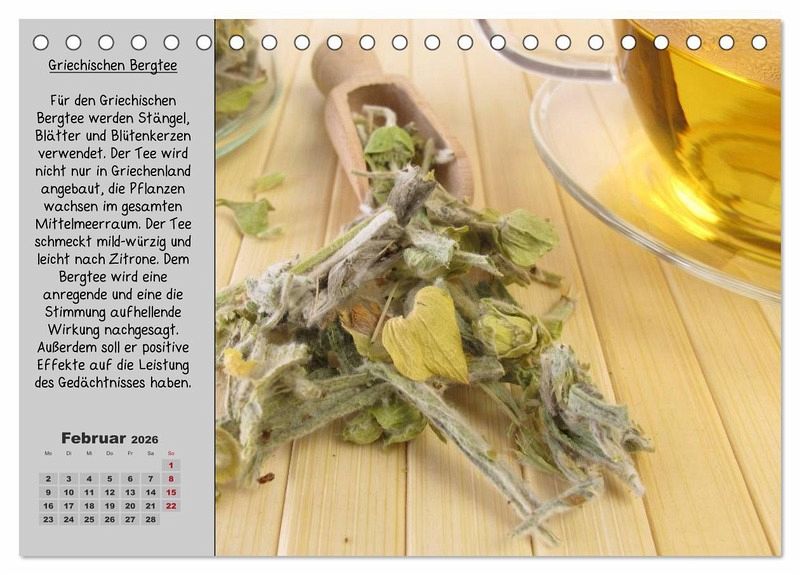 QUALITÄT - Hochwertiger Fotokalender mit 12 wunderschönen Motiven auf lichtbeständigem Bilderdruckpapier, robuste Spiralbindung.NACHHALTIG - deutliche Abfallreduzierung durch bedarfsgerechte Einzelstückfertigung, umweltfreundliches FSC-zertifiziertes Papier, Produktion in Deutschland, klimabewusste Logistik.PERFEKTES GESCHENK - Kalender für Freunde und Familie, für Kinder und Erwachsene, jung und alt, zu Weihnachten, Geburtstag oder zwischendurch.VIELFALT - Bildkalender in verschiedenen Formaten, z.B. DIN A5, DIN A4, DIN A3 sowie DIN A2. Ob Naturmotiv, Gemälde oder Fotos, ideal für ein persönliches Wohlfühlambiente.In diesem Kalender werden klassische Teesorten, Kräuter- und Früchtetees porträtiert von Autor(in): Heike Rau