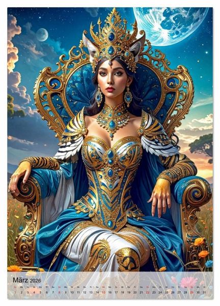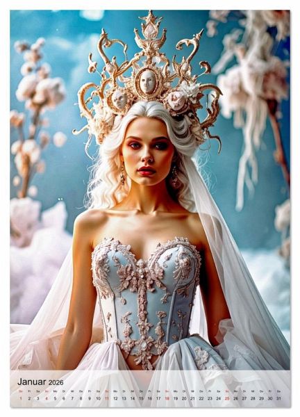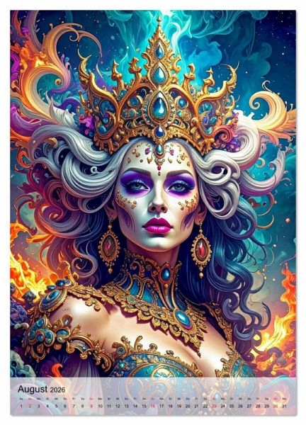 Lassen Sie sich betören vom Zauber und Glamour der atemberaubenden Geschöpfe aus diesem Kalender der Königinnen. Jeden Monat besucht Sie eine andere Königin, geschmückt mit jahreszeitgemäßen Attributen. Ein ganzes Jahr in solch edler Gesellschaft kann nur ein gelungenes sein