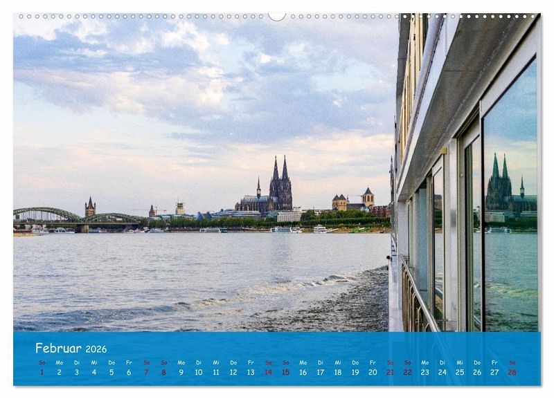 Februar: Kölner Dom mit Spieglung im Kreuzfahrtschiff