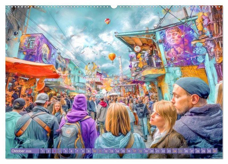 Tauchen Sie ein in eine charmante Stadt mit KI-generierten Alltagsszenen. In liebevoll gezeichnetem Stil begegnen Ihnen tierische Bewohner und menschliche Einwohner gleichermaßen, eine bunte, lebensfrohe Gemeinschaft. Erleben Sie Musikanten wie auch drollige Hunde, umgeben von farbenfrohen Häuserzeilen, belebten Märkten und gemütlichen Plätzen. Ideal für Fans von Illustrationen und bunter KI-Kunst.