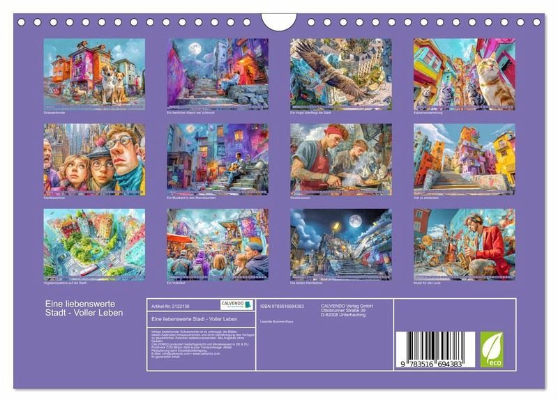 QUALITÄT - Hochwertiger Fotokalender mit 12 wunderschönen Motiven auf lichtbeständigem Bilderdruckpapier, robuste Spiralbindung mit Aufhängebügel.NACHHALTIG - deutliche Abfallreduzierung durch bedarfsgerechte Einzelstückfertigung, umweltfreundliches FSC-zertifiziertes Papier, Produktion in Deutschland, klimabewusste Logistik.PERFEKTES GESCHENK - Kalender für Freunde und Familie, für Kinder und Erwachsene, jung und alt, zu Weihnachten, Geburtstag oder zwischendurch.VIELFALT - Bildkalender in verschiedenen Formaten, z.B. DIN A5, DIN A4, DIN A3 sowie DIN A2. Ob Naturmotiv, Gemälde oder Fotos, ideal für ein persönliches Wohlfühlambiente.Bunte Alltagsszenen von Autor(in): Liselotte Brunner-Klaus