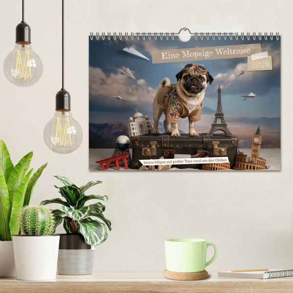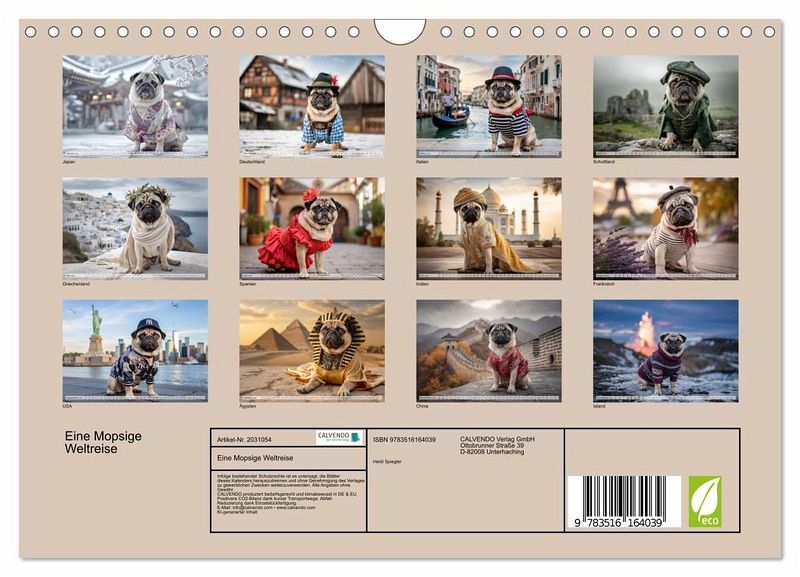 Begleite die charmanten KI-generierten Möpse auf ihrer Reise rund um die Welt! Monat für Monat erkunden sie neue Länder, berühmte Sehenswürdigkeiten und exotische Orte - stets mit einem Augenzwinkern und der unwiderstehlichen Mops-Persönlichkeit. Ob vor dem Eiffelturm, am in den Highlands oder zwischen den Kirschblüten Japans - dieser Kalender bringt dir 12 liebevoll gestaltete KI-Motive voller Humor, Fernweh und tierischer Lebensfreude nach Hause. Perfekt für alle Mops-Fans, Reiseliebhaber und die, die sich das Schmunzeln nicht nehmen lassen. Hol dir jetzt das Abenteuer ins…mehr