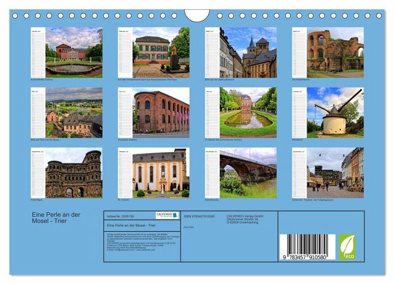 QUALITÄT - Hochwertiger Fotokalender mit 12 wunderschönen Motiven auf lichtbeständigem Bilderdruckpapier, robuste Spiralbindung mit Aufhängebügel.NACHHALTIG - deutliche Abfallreduzierung durch bedarfsgerechte Einzelstückfertigung, umweltfreundliches FSC-zertifiziertes Papier, Produktion in Deutschland, klimabewusste Logistik.PERFEKTES GESCHENK - Kalender für Freunde und Familie, für Kinder und Erwachsene, jung und alt, zu Weihnachten, Geburtstag oder zwischendurch.VIELFALT - Bildkalender in verschiedenen Formaten, z.B. DIN A5, DIN A4, DIN A3 sowie DINA2. Ob Naturmotiv, Gemälde oder Fotos, ideal für ein persönliches Wohlfühlambiente.Trier, eine der ältesten Städte Deutschlands mit vielen Sehenswürdigkeiten von Autor(in): Arno Klatt