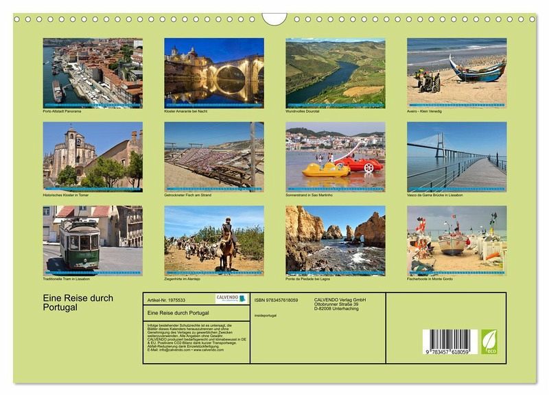 QUALITÄT - Hochwertiger Fotokalender mit 12 wunderschönen Motiven auf lichtbeständigem Bilderdruckpapier, robuste Spiralbindung mit Aufhängebügel.NACHHALTIG - deutliche Abfallreduzierung durch bedarfsgerechte Einzelstückfertigung, umweltfreundliches FSC-zertifiziertes Papier, Produktion in Deutschland, klimabewusste Logistik.PERFEKTES GESCHENK - Kalender für Freunde und Familie, für Kinder und Erwachsene, jung und alt, zu Weihnachten, Geburtstag oder zwischendurch.VIELFALT - Bildkalender in verschiedenen Formaten, z.B. DIN A5, DIN A4, DIN A3 sowie DIN A2. Ob Naturmotiv, Gemälde oder Fotos, ideal für ein persönliches Wohlfühlambiente.Portugal von Nord bis Süd in farbigen Bildern von Autor(in): Karin Strunge