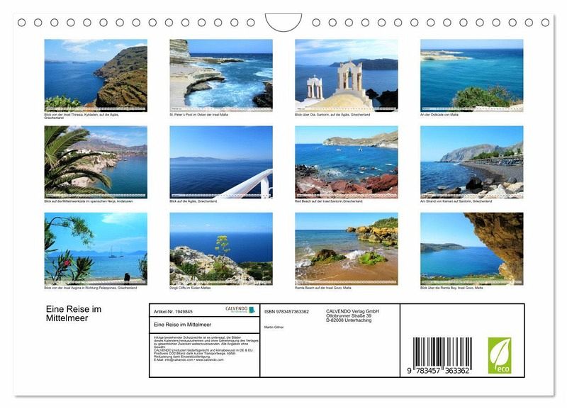 QUALITÄT - Hochwertiger Fotokalender mit 12 wunderschönen Motiven auf lichtbeständigem Bilderdruckpapier, robuste Spiralbindung mit Aufhängebügel.NACHHALTIG - deutliche Abfallreduzierung durch bedarfsgerechte Einzelstückfertigung, umweltfreundliches FSC-zertifiziertes Papier, Produktion in Deutschland, klimabewusste Logistik.PERFEKTES GESCHENK - Kalender für Freunde und Familie, für Kinder und Erwachsene, jung und alt, zu Weihnachten, Geburtstag oder zwischendurch.VIELFALT - Bildkalender in verschiedenen Formaten, z.B. DIN A5, DIN A4, DIN A3 sowie DIN A2. Ob Naturmotiv, Gemälde oder Fotos, ideal für ein persönliches Wohlfühlambiente.Der Mittelmeerraum fasziniert mit den vielen schönen Küsten, traumhaften Stränden und einem mediterranen Klima. von Autor(in): Martin Gillner