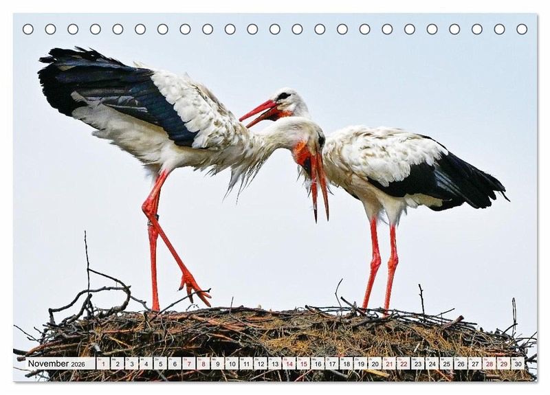 Januar: Ein Blick der Liebe? Storchpaare bleiben einander zumindest während einer Brutsaison treu. Wirklich treu sind sie aber nur ihren Nestern