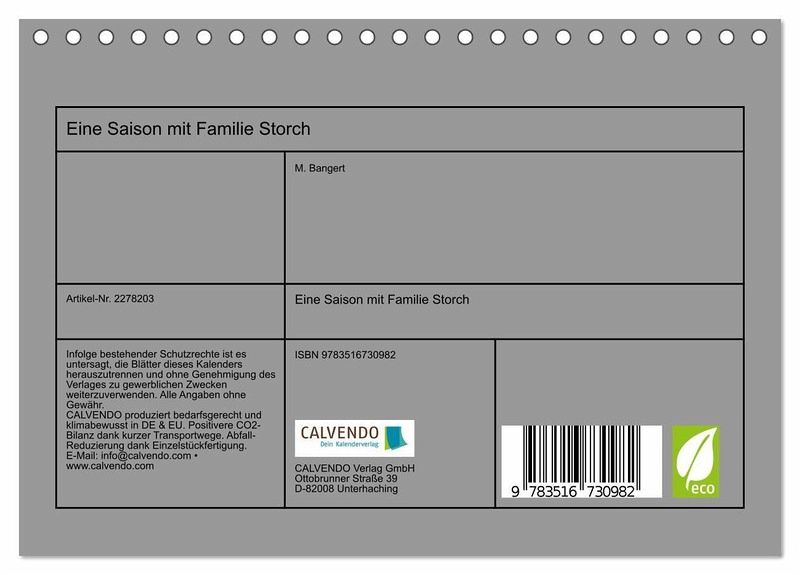 QUALITÄT - Hochwertiger Fotokalender mit 12 wunderschönen Motiven auf lichtbeständigem Bilderdruckpapier, robuste Spiralbindung.NACHHALTIG - deutliche Abfallreduzierung durch bedarfsgerechte Einzelstückfertigung, umweltfreundliches FSC-zertifiziertes Papier, Produktion in Deutschland, klimabewusste Logistik.PERFEKTES GESCHENK - Kalender für Freunde und Familie, für Kinder und Erwachsene, jung und alt, zu Weihnachten, Geburtstag oder zwischendurch.VIELFALT - Bildkalender in verschiedenen Formaten, z.B. DIN A5, DIN A4, DIN A3 sowie DIN A2. Ob Naturmotiv, Gemälde oder Fotos, ideal für ein persönliches Wohlfühlambiente.Begleiten Sie eine Storchenfamilie durch die Stationen einer Brutsaison von Autor(in): Mark Bangert