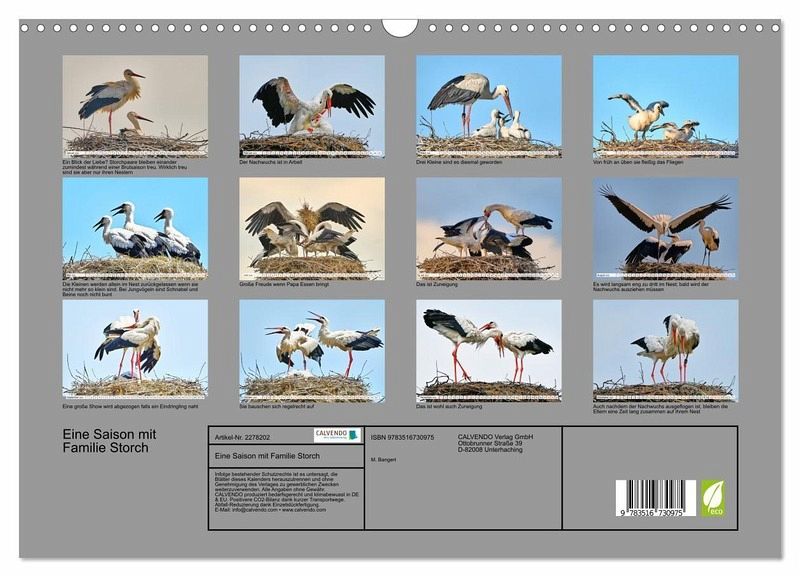 QUALITÄT - Hochwertiger Fotokalender mit 12 wunderschönen Motiven auf lichtbeständigem Bilderdruckpapier, robuste Spiralbindung mit Aufhängebügel.NACHHALTIG - deutliche Abfallreduzierung durch bedarfsgerechte Einzelstückfertigung, umweltfreundliches FSC-zertifiziertes Papier, Produktion in Deutschland, klimabewusste Logistik.PERFEKTES GESCHENK - Kalender für Freunde und Familie, für Kinder und Erwachsene, jung und alt, zu Weihnachten, Geburtstag oder zwischendurch.VIELFALT - Bildkalender in verschiedenen Formaten, z.B. DIN A5, DIN A4, DIN A3 sowie DIN A2. Ob Naturmotiv, Gemälde oder Fotos, ideal für ein persönliches Wohlfühlambiente.Begleiten Sie eine Storchenfamilie durch die Stationen einer Brutsaison von Autor(in): Mark Bangert