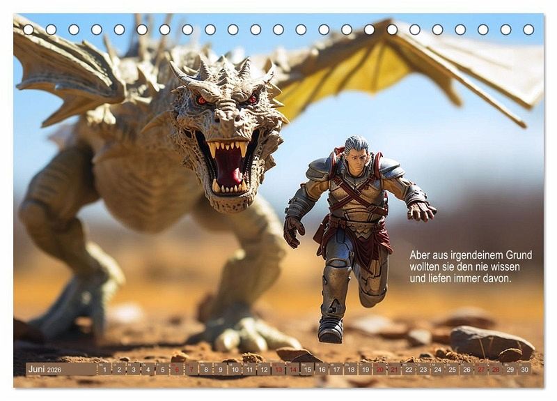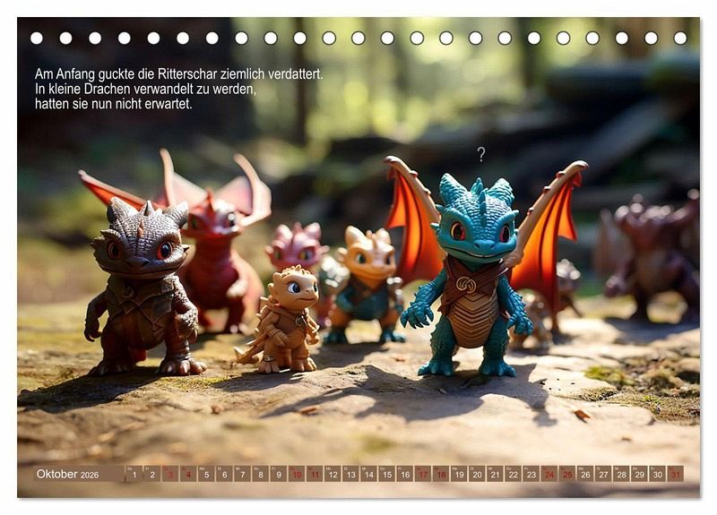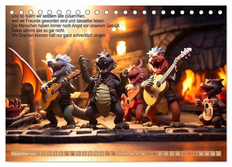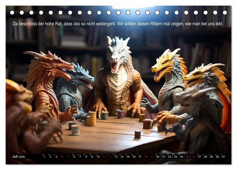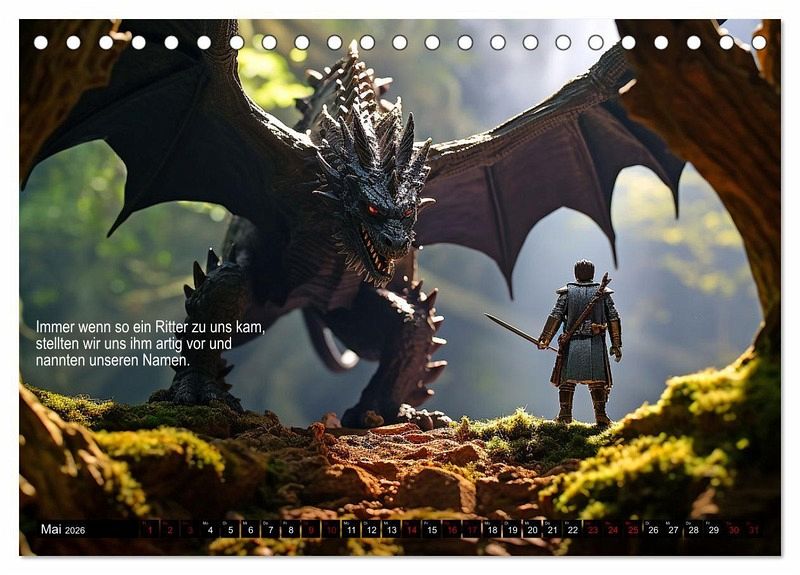 Viele Menschen denken ja, sie wüssten schon alles über Drachen. Es gibt so viele Bücher und Filme, also muss doch schon alles bekannt sein? Aber nein. Hier in diesem Kalender erlebst du die echte, wahre Geschichte, die keiner erzählt. Weil es den Menschen zu peinlich ist vermutlich. Aber sieh selbst und lass dich inspirieren, die Geschichte zu den Bildern weiter zu erzählen. Vielleicht fallen dir noch ganz andere Dinge ein, die die Drachen niemals erzählt haben?