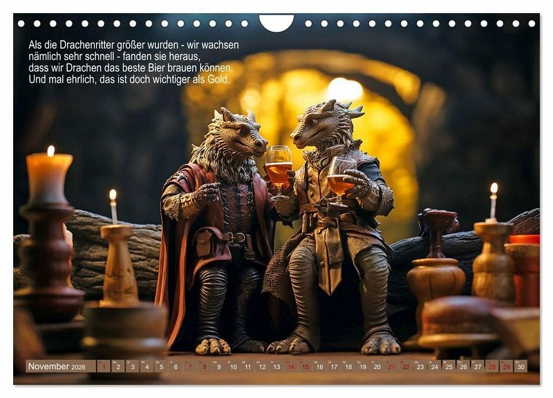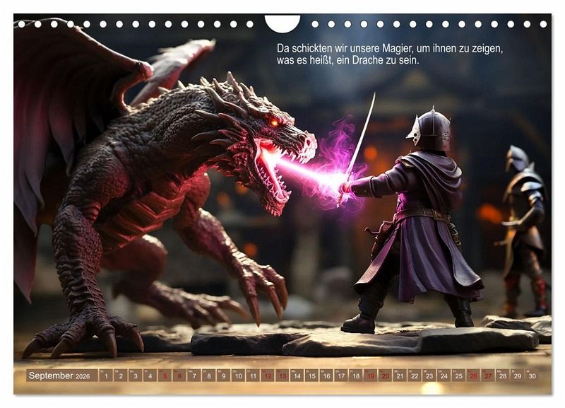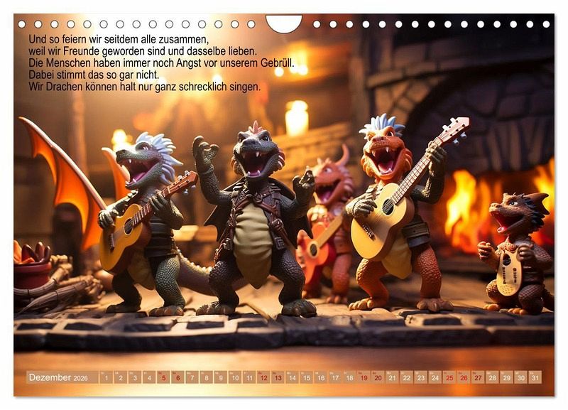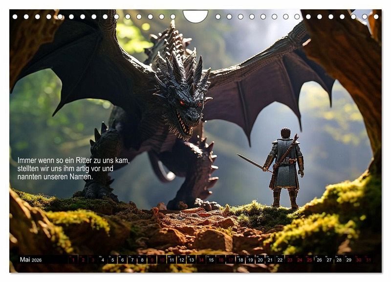 Viele Menschen denken ja, sie wüssten schon alles über Drachen. Es gibt so viele Bücher und Filme, also muss doch schon alles bekannt sein? Aber nein. Hier in diesem Kalender erlebst du die echte, wahre Geschichte, die keiner erzählt. Weil es den Menschen zu peinlich ist vermutlich. Aber sieh selbst und lass dich inspirieren, die Geschichte zu den Bildern weiter zu erzählen. Vielleicht fallen dir noch ganz andere Dinge ein, die die Drachen niemals erzählt haben?
