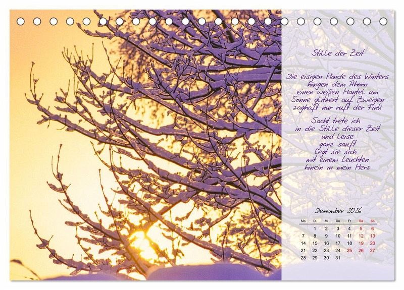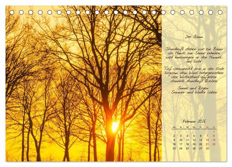 Hochwertiger Tischkalender zum Aufstellen mit 12 wunderschönen Bildern. Unsere Umwelt liegt uns am Herzen. Daher verwenden wir ausschließlich FSC-zertifizierte Papiere aus verantwortungsvoller Waldwirtschaft. Wir vermeiden Überproduktion und somit deutliche Abfallmengen, da wir bedarfsgerecht in Einzelfertigung in Deutschland (Made in Germany) produzieren. Wir halten unsere Transportwege kurz und sorgen für eine klimabewusste Logistik.