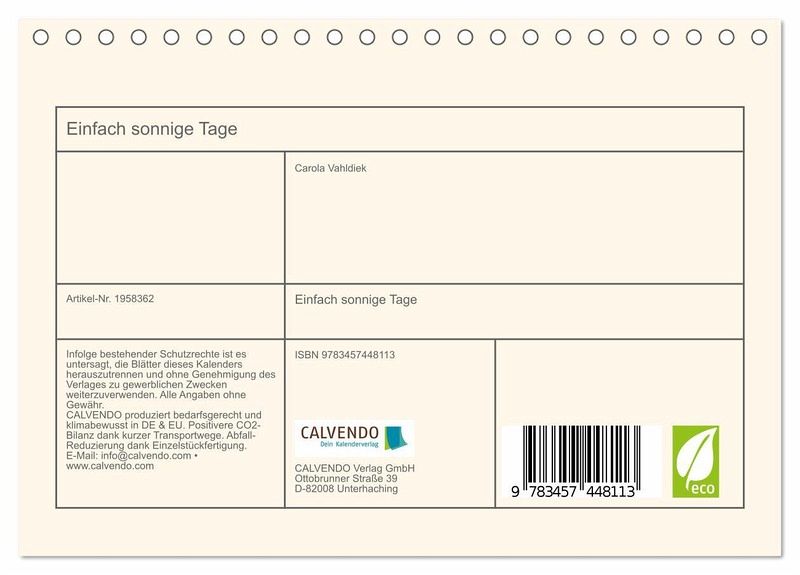 QUALITÄT - Hochwertiger Fotokalender mit 12 wunderschönen Motiven auf lichtbeständigem Bilderdruckpapier, robuste Spiralbindung.NACHHALTIG - deutliche Abfallreduzierung durch bedarfsgerechte Einzelstückfertigung, umweltfreundliches FSC-zertifiziertes Papier, Produktion in Deutschland, klimabewusste Logistik.PERFEKTES GESCHENK - Kalender für Freunde und Familie, für Kinder und Erwachsene, jung und alt, zu Weihnachten, Geburtstag oder zwischendurch.VIELFALT - Bildkalender in verschiedenen Formaten, z.B. DIN A5, DIN A4, DIN A3 sowie DIN A2. Ob Naturmotiv, Gemälde oder Fotos, ideal für ein persönliches Wohlfühlambiente.Lichtvolle Fotos und Texte von Carola Vahldiek von Autor(in): Carola Vahldiek