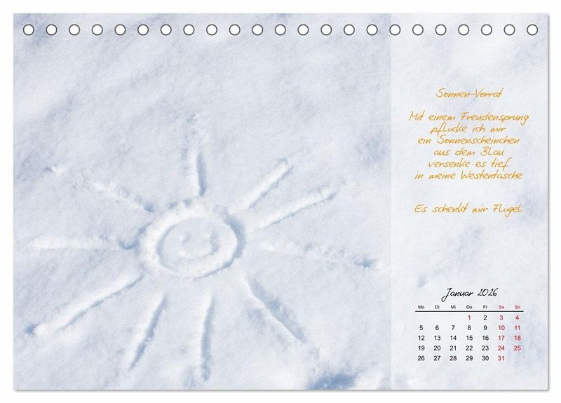 Dieser sonnig-fröhliche Kalender schenkt Lebensfreude, Optimismus und Zuversicht. Motivierende Gedanken, positive Impulse und Inspirationen, eingebettet in wunderschöne, lichtvolle Natur-Motive der bekannten Autorin und Naturfotografin Carola Vahldiek. Jedes Kalenderblatt ermutigt, stärkt und inspiriert. Dieser Kalender bringt Freude ins Leben und schicken Sie mit positiver Einstellung in den Tag!