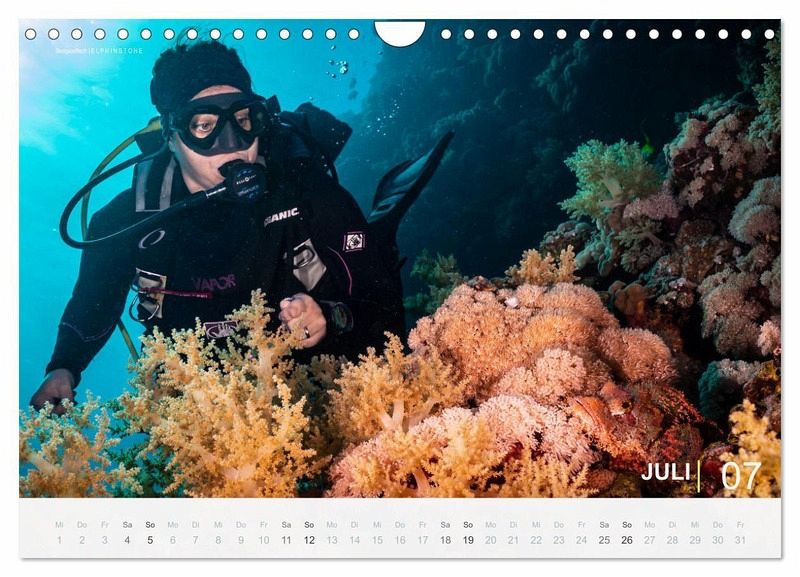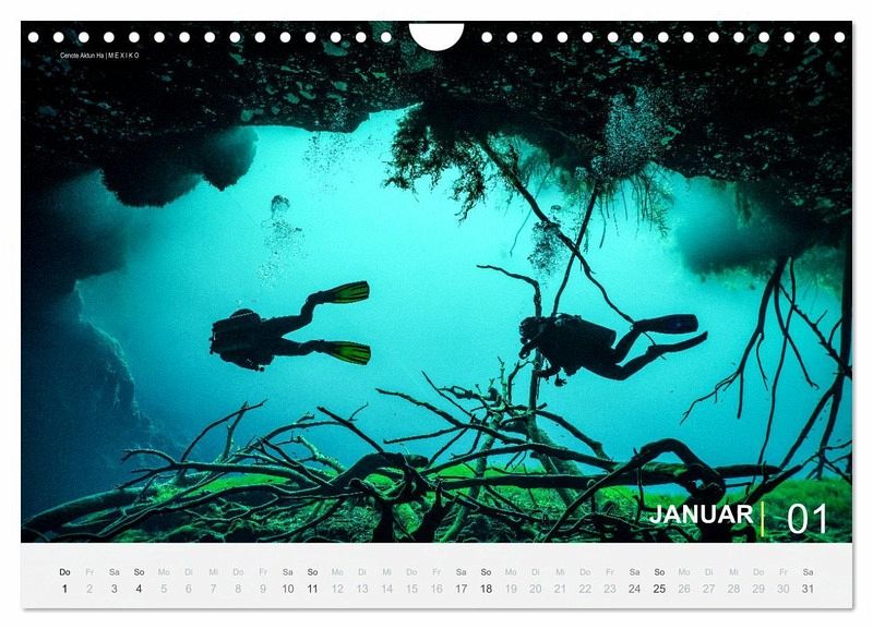 Das endlose Blau des Ozeans, bunte Korallenriffe, mystische Höhlen und die scheinbar endlose Vielfalt an Fischen und anderen Lebewesen der Unterwasserwelt machen das Sporttauchen zu einem der schönsten Hobbies der Welt. Dieser Tauchen Kalender zeigt Monat für Monat wunderbare Unterwasserfotos mit denen sich jeder begeisterte Taucher identifizieren kann - von farbenfrohen Korallenriffen am bekannte Elphinstone Riff im Roten Meer, über die mystischen Cenoten in Mexiko, bis hin zu Haien, Mantas und Meeresschildkröten auf den Malediven, Moorea und vielen weiteren wunderbaren Tauchreisezielen.
