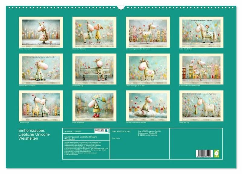 QUALITÄT - Hochwertiger Fotokalender mit 12 wunderschönen Motiven auf lichtbeständigem Bilderdruckpapier, robuste Spiralbindung mit Aufhängebügel.NACHHALTIG - deutliche Abfallreduzierung durch bedarfsgerechte Einzelstückfertigung, umweltfreundliches FSC-zertifiziertes Papier, Produktion in Deutschland, klimabewusste Logistik.PERFEKTES GESCHENK - Kalender für Freunde und Familie, für Kinder und Erwachsene, jung und alt, zu Weihnachten, Geburtstag oder zwischendurch.VIELFALT - Bildkalender in verschiedenen Formaten, z.B. DIN A5, DIN A4, DIN A3 sowie DIN A2. Ob Naturmotiv, Gemälde oder Fotos, ideal für ein persönliches Wohlfühlambiente.Mit Einhornsprüchen durch ein Jahr voller zarter, magischer Abenteuer von Autor(in): Rose Hurley
