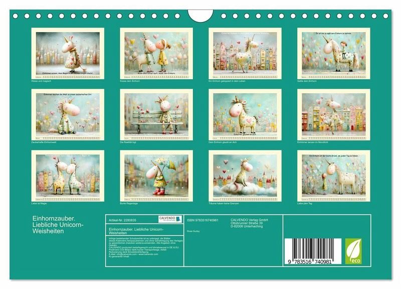 QUALITÄT - Hochwertiger Fotokalender mit 12 wunderschönen Motiven auf lichtbeständigem Bilderdruckpapier, robuste Spiralbindung mit Aufhängebügel.NACHHALTIG - deutliche Abfallreduzierung durch bedarfsgerechte Einzelstückfertigung, umweltfreundliches FSC-zertifiziertes Papier, Produktion in Deutschland, klimabewusste Logistik.PERFEKTES GESCHENK - Kalender für Freunde und Familie, für Kinder und Erwachsene, jung und alt, zu Weihnachten, Geburtstag oder zwischendurch.VIELFALT - Bildkalender in verschiedenen Formaten, z.B. DIN A5, DIN A4, DIN A3 sowie DIN A2. Ob Naturmotiv, Gemälde oder Fotos, ideal für ein persönliches Wohlfühlambiente.Mit Einhornsprüchen durch ein Jahr voller zarter, magischer Abenteuer von Autor(in): Rose Hurley