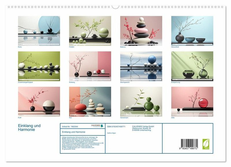 PREMIUM-LINIE - Brillanter Fotokalender mit 12 wunderschönen Motiven, Kunstdruck in Hochglanz in Museumsqualität.QUALITÄT - edle Materialien, stabile Rückwand mit 2 innovativen Einstecktaschen für eine optimale Präsentation an der Wand.NACHHALTIG - deutliche Abfallreduzierung durch bedarfsgerechte Einzelstückfertigung, umweltfreundliches FSC-zertifiziertes Papier, Produktion in Deutschland, klimabewusste Logistik.PERFEKTES GESCHENK - Kalender für Freunde und Familie, für Kinder und Erwachsene, jung und alt, zu Weihnachten, Geburtstag oder zwischendurch.Finde deine innere Ruhe und lebe in Einklang und Harmonie KI generierte minimalistische Abbildungen von Autor(in): Catill
