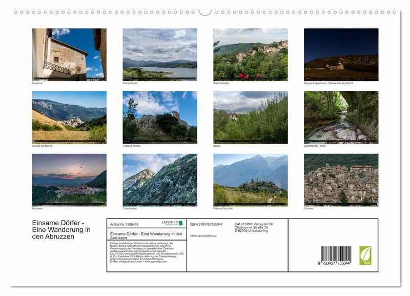 PREMIUM-LINIE - Brillanter Fotokalender mit 12 wunderschönen Motiven, Kunstdruck in Hochglanz in Museumsqualität.QUALITÄT - edle Materialien, stabile Rückwand mit 2 innovativen Einstecktaschen für eine optimale Präsentation an der Wand.NACHHALTIG - deutliche Abfallreduzierung durch bedarfsgerechte Einzelstückfertigung, umweltfreundliches FSC-zertifiziertes Papier, Produktion in Deutschland, klimabewusste Logistik.PERFEKTES GESCHENK - Kalender für Freunde und Familie, für Kinder und Erwachsene, jung und alt, zu Weihnachten, Geburtstag oder zwischendurch.Begleiten Sie uns auf eine Wanderung durch die Abruzzen. Von Amatrice bis nach Scanno und Sulmona. Die Abruzzen sind ein eher unbekanntes und einsames Wandergebiet östlich von Rom. von Autor(in): Marisa Jorda Motzkau