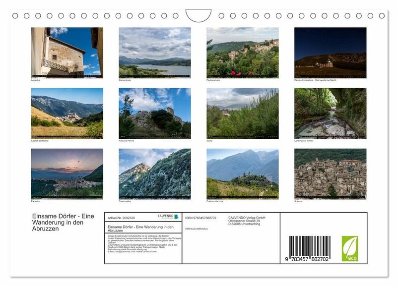 QUALITÄT - Hochwertiger Fotokalender mit 12 wunderschönen Motiven auf lichtbeständigem Bilderdruckpapier, robuste Spiralbindung mit Aufhängebügel.NACHHALTIG - deutliche Abfallreduzierung durch bedarfsgerechte Einzelstückfertigung, umweltfreundliches FSC-zertifiziertes Papier, Produktion in Deutschland, klimabewusste Logistik.PERFEKTES GESCHENK - Kalender für Freunde und Familie, für Kinder und Erwachsene, jung und alt, zu Weihnachten, Geburtstag oder zwischendurch.VIELFALT - Bildkalender in verschiedenen Formaten, z.B. DIN A5, DIN A4, DIN A3 sowie DIN A2. Ob Naturmotiv, Gemälde oder Fotos, ideal für ein persönliches Wohlfühlambiente.Begleiten Sie uns auf eine Wanderung durch die Abruzzen. Von Amatrice bis nach Scanno und Sulmona. Die Abruzzen sind ein eher unbekanntes und einsames Wandergebiet östlich von Rom. von Autor(in): Marisa Jorda Motzkau