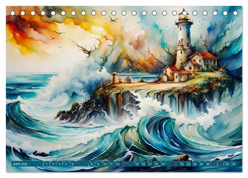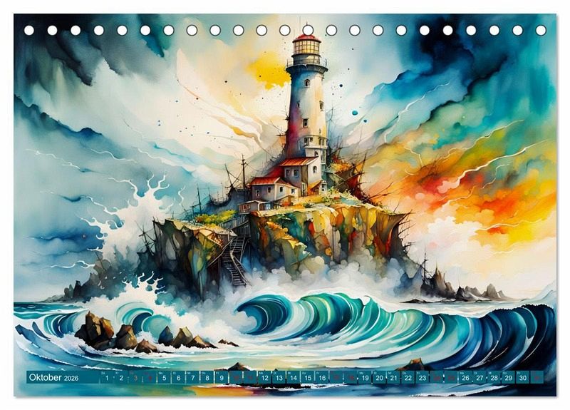 Dieser außergewöhnliche Kalender zeigt Ihnen jeden Monat ein neues Bild von einem Leuchtturm, der an einem malerischen Ort steht. Sie werden begeistert sein, wie die künstliche Intelligenz die Farben, Formen und Details der Leuchttürme und ihrer Umgebung einfängt und wiedergibt.
