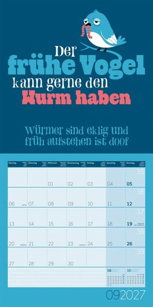 Zwölf freche und lustige Sprüche, die Sie gut durchs Jahr bringen: Fans von farbenfroher, typografischer Wanddekoration und starken Statements treffen mit diesem humorvollen Kalender garantiert die richtige Wahl. Alle Art12-Kalender sind mit einem Jahresplaner ausgestattet.