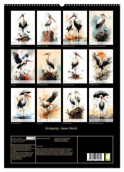 PREMIUM-LINIE - Brillanter Fotokalender mit 12 wunderschönen Motiven, Kunstdruck in Hochglanz in Museumsqualität.QUALITÄT - edle Materialien, stabile Rückwand mit 2 innovativen Einstecktaschen für eine optimale Präsentation an der Wand.NACHHALTIG - deutliche Abfallreduzierung durch bedarfsgerechte Einzelstückfertigung, umweltfreundliches FSC-zertifiziertes Papier, Produktion in Deutschland, klimabewusste Logistik.PERFEKTES GESCHENK - Kalender für Freunde und Familie, für Kinder und Erwachsene, jung und alt, zu Weihnachten, Geburtstag oder zwischendurch.Der Storch - lange Beine und lautes Klappern von Autor(in): Peter Roder