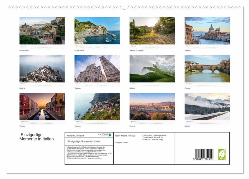Hier finden Sie großartige Fotografien aus Italien. Entdecken Sie die Schönheit Italiens für sich. In diesem Kalender erwarten Sie zwölf faszinierende Bilder, die Sie so zuvor sicherlich noch nicht gesehen haben.