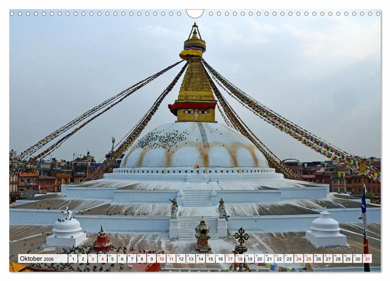 Oktober: Der riesige Stupa von Bodnath im Nordosten von Kathmandu hat eine Höhe von 36 Meter