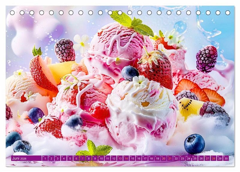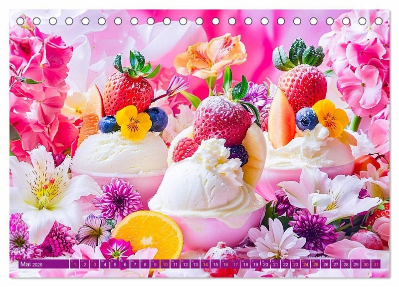 Der Kalender "Eiscreme-Träume - Süße Verlockung und florale Schönheiten" bietet Ihnen eine köstliche KI-generierte Reise durch eine Vielzahl von Eissorten, die mit blumigen Aromen und kunstvollen Verzierungen verlocken. Tauchen Sie ein in die Welt der süßen Genüsse und lassen Sie sich von den einzigartigen Kreationen und traumhaften Blumenarrangements inspirieren. Dieser Kalender vereint die unwiderstehliche Versuchung von Eiscreme mit der zeitlosen Schönheit der Natur in einem harmonischen Zusammenspiel.