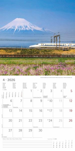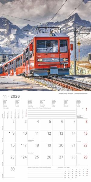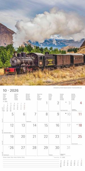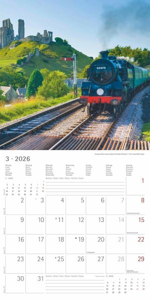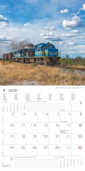 Das übersichtliche Kalendarium, welches Monat für Monat zahlreiche Zusatzinformationen liefert (z. B. Monatsübersichten, Ferientermine oder Mondphasen) und auch viel Platz für Notizen bietet, fügt sich harmonisch unter den Fotomotiven an. Der Bildkalender Dampfloks 2026 der Marke Alpha Edition ist das perfekte Geschenk für alle Eisenbahnfreunde.