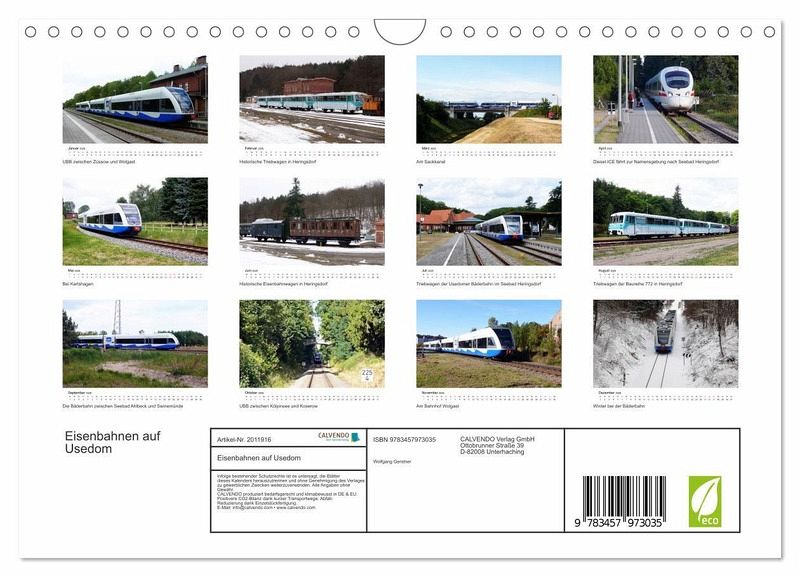 QUALITÄT - Hochwertiger Fotokalender mit 12 wunderschönen Motiven auf lichtbeständigem Bilderdruckpapier, robuste Spiralbindung mit Aufhängebügel.NACHHALTIG - deutliche Abfallreduzierung durch bedarfsgerechte Einzelstückfertigung, umweltfreundliches FSC-zertifiziertes Papier, Produktion in Deutschland, klimabewusste Logistik.PERFEKTES GESCHENK - Kalender für Freunde und Familie, für Kinder und Erwachsene, jung und alt, zu Weihnachten, Geburtstag oder zwischendurch.VIELFALT - Bildkalender in verschiedenen Formaten, z.B. DIN A5, DIN A4, DIN A3 sowie DIN A2. Ob Naturmotiv, Gemälde oder Fotos, ideal für ein persönliches Wohlfühlambiente.Die Bäderbahn zwischen Wolgast, Peenemünde und Swinemünde. von Autor(in): Wolfgang Gerstner
