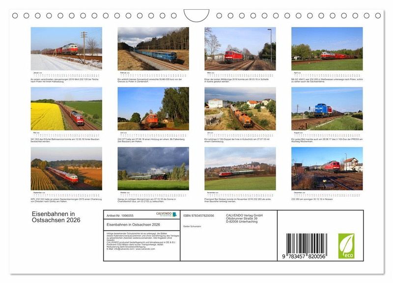 QUALITÄT - Hochwertiger Fotokalender mit 12 wunderschönen Motiven auf lichtbeständigem Bilderdruckpapier, robuste Spiralbindung mit Aufhängebügel.NACHHALTIG - deutliche Abfallreduzierung durch bedarfsgerechte Einzelstückfertigung, umweltfreundliches FSC-zertifiziertes Papier, Produktion in Deutschland, klimabewusste Logistik.PERFEKTES GESCHENK - Kalender für Freunde und Familie, für Kinder und Erwachsene, jung und alt, zu Weihnachten, Geburtstag oder zwischendurch.VIELFALT - Bildkalender in verschiedenen Formaten, z.B. DIN A5, DIN A4, DIN A3 sowie DIN A2. Ob Naturmotiv, Gemälde oder Fotos, ideal für ein persönliches Wohlfühlambiente.Stimmungsvolle (Bahn-)Bilder aus Ostsachsen von Autor(in): Stefan Schumann