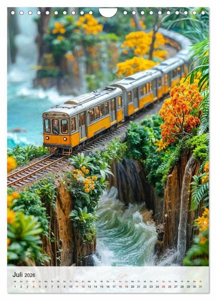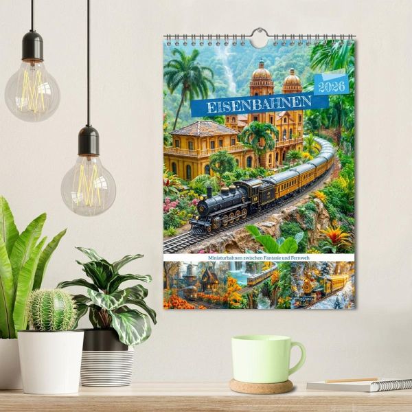 Der Kalender "Eisenbahnen - Miniaturbahnen zwischen Fantasie und Fernweh" entführt Eisenbahnfans und Liebhaber detailverliebter KI-generierten Miniaturwelten auf eine magische Reise rund um den Globus. Jeder Monat zeigt kunstvoll gestaltete Szenen mit nostalgischen Zügen, die durch zauberhafte Landschaften fahren - mal verschneit, mal tropisch, mal blumig oder herbstlich. Ein Muss für alle, die sich von Eisenbahnromantik, Fernweh und fantasievollen Kulissen begeistern lassen. Ideal zum Verschenken oder Träumen für das ganze Jahr.