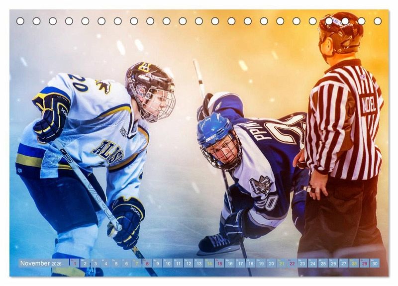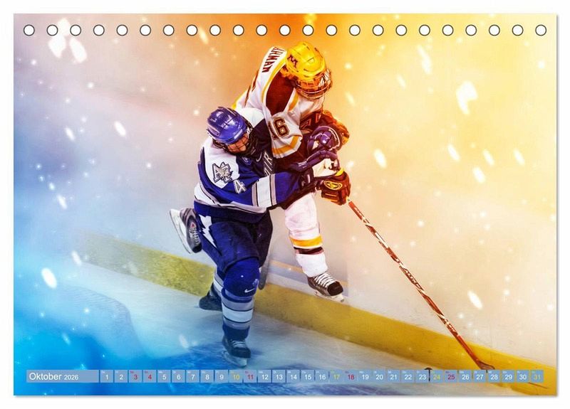 Eishockey entstand wahrscheinlich zwischen 1840 und 1875 in Kanada. Heute ist es eine in der ganzen Welt verbreitete Sportart, die von Kraft, Ausdauer und Härte geprägt ist. Der Fotokünstler Peter Roder hat imposante Bilder dieser beliebten Sportart gestaltet, eindrucksvolle Kunstwerke für das ganze Jahr.