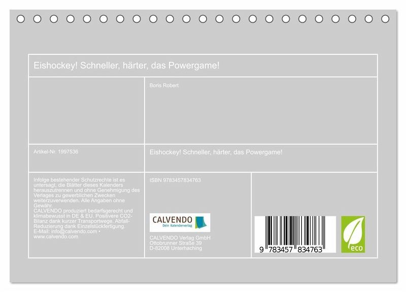 QUALITÄT - Hochwertiger Fotokalender mit 12 wunderschönen Motiven auf lichtbeständigem Bilderdruckpapier, robuste Spiralbindung.NACHHALTIG - deutliche Abfallreduzierung durch bedarfsgerechte Einzelstückfertigung, umweltfreundliches FSC-zertifiziertes Papier, Produktion in Deutschland, klimabewusste Logistik.PERFEKTES GESCHENK - Kalender für Freunde und Familie, für Kinder und Erwachsene, jung und alt, zu Weihnachten, Geburtstag oder zwischendurch.VIELFALT - Bildkalender in verschiedenen Formaten, z.B. DIN A5, DIN A4, DIN A3 sowie DIN A2. Ob Naturmotiv, Gemälde oder Fotos, ideal für ein persönliches Wohlfühlambiente.Heiße Action auf kaltem Eis! Das ist Eishockey live! von Autor(in): Boris Flör