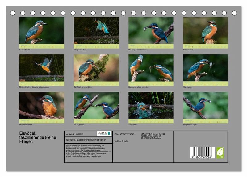 QUALITÄT - Hochwertiger Fotokalender mit 12 wunderschönen Motiven auf lichtbeständigem Bilderdruckpapier, robuste Spiralbindung.NACHHALTIG - deutliche Abfallreduzierung durch bedarfsgerechte Einzelstückfertigung, umweltfreundliches FSC-zertifiziertes Papier, Produktion in Deutschland, klimabewusste Logistik.PERFEKTES GESCHENK - Kalender für Freunde und Familie, für Kinder und Erwachsene, jung und alt, zu Weihnachten, Geburtstag oder zwischendurch.VIELFALT - Bildkalender in verschiedenen Formaten, z.B. DIN A5, DIN A4, DIN A3 sowie DIN A2. Ob Naturmotiv, Gemälde oder Fotos, ideal für ein persönliches Wohlfühlambiente.Der Eisvogel, eines der schönsten Tiere unserer Erde. von Autor(in): Wiebke von der Heyde