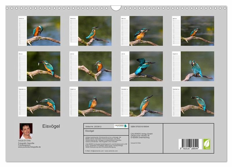 QUALITÄT - Hochwertiger Fotokalender mit 12 wunderschönen Motiven auf lichtbeständigem Bilderdruckpapier, robuste Spiralbindung mit Aufhängebügel.NACHHALTIG - deutliche Abfallreduzierung durch bedarfsgerechte Einzelstückfertigung, umweltfreundliches FSC-zertifiziertes Papier, Produktion in Deutschland, klimabewusste Logistik.PERFEKTES GESCHENK - Kalender für Freunde und Familie, für Kinder und Erwachsene, jung und alt, zu Weihnachten, Geburtstag oder zwischendurch.VIELFALT - Bildkalender in verschiedenen Formaten, z.B. DIN A5, DIN A4, DIN A3 sowie DIN A2. Ob Naturmotiv, Gemälde oder Fotos, ideal für ein persönliches Wohlfühlambiente.Ein Planer mit schönen Aufnahmen von Eisvögeln von Autor(in): PuraVida