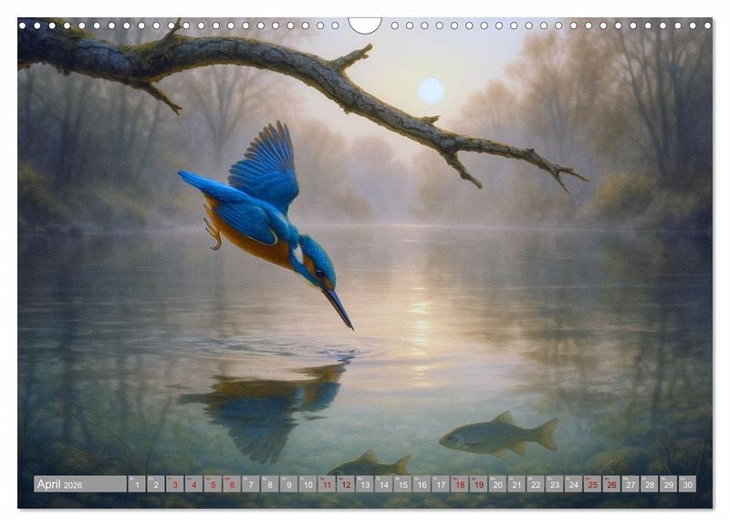 Entdecken Sie die faszinierende Welt der Eisvögel neu! Dieser Kalender präsentiert zwölf außergewöhnliche Motive, geschaffen mit modernster KI-Technologie. Erleben Sie, wie innovative digitale Kunst die Schönheit, Farbenpracht und Eleganz des Eisvogels auf völlig neue Weise interpretiert - Monat für Monat ein inspirierender Blickfang für alle Natur- und Kunstliebhaber!