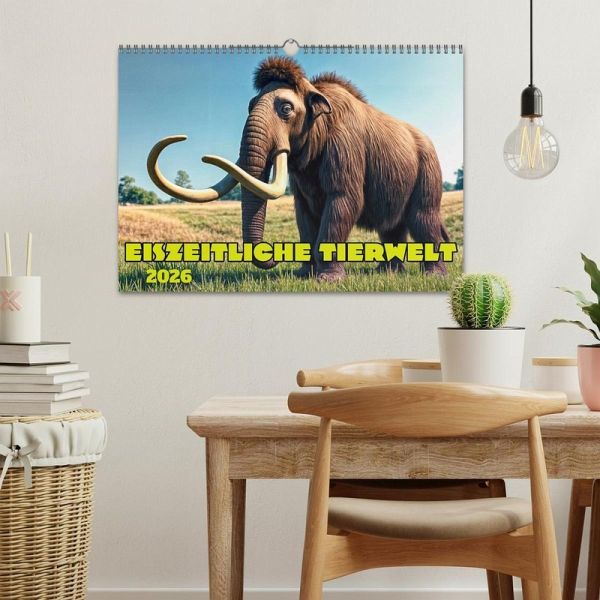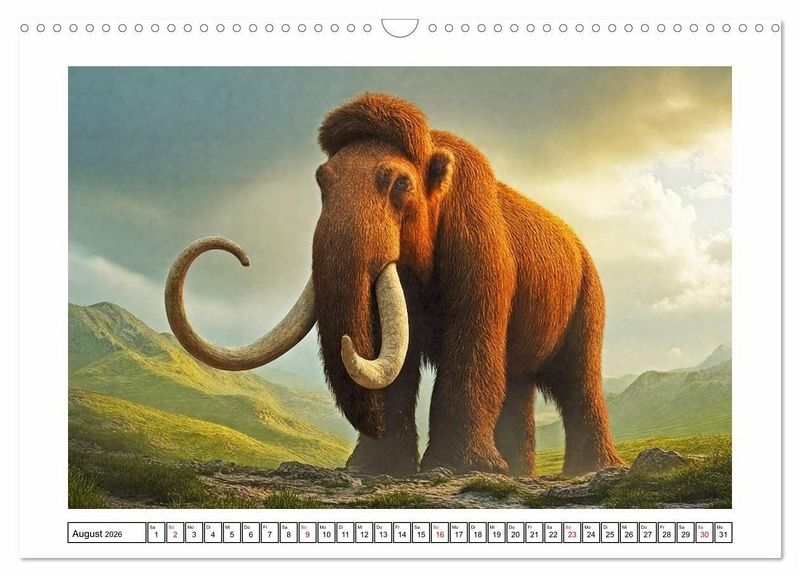 Das Eiszeitalter war die große Zeit der Landsäugetiere. In diesem Zeitraum, dem Känozoikum (seit etwa 66 Millionen Jahren) entwickelten viele von ihnen eine vorher noch nicht dagewesene Größe, Präsenz und Verbreitung - begünstigt durch das vorherige Aussterben der Dinosaurier. Stellvertretend für alle Säugetiere des Eiszeitalters will dieser, mit Hilfe von künstlicher Intelligenz entstandene, Kalender, zwölf Säugetiere ins Rampenlicht stellen. Die meisten sind schon ausgestorben, aber es sind auch Arten dabei, die wir nach wie vor bewundern können - nicht nur auf Kalenderbildern - sondern auch auf freier Wildbahn.