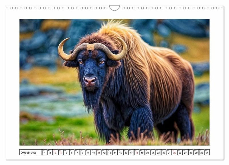 Oktober: Der Moschusochse (Ovibos moschatus) ist kein Rind sondern zählt zu den Ziegenähnlichen.