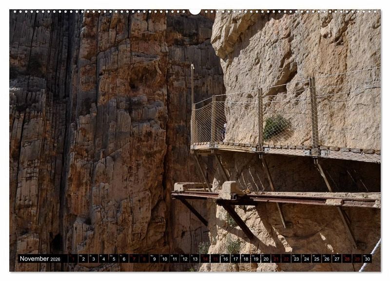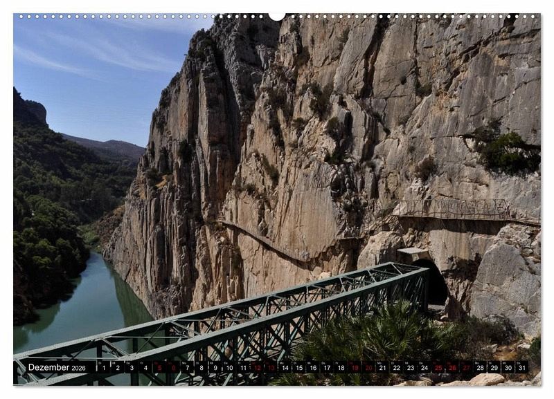 Bei den CALVENDO Editionen handelt es sich um eine streng limitierte Anzahl handverlesener Kalender, welche CALVENDO aufgrund ihrer Güte als außergewöhnlich wertvoll und typisch für ihr jeweiliges Sujet erachtet und dem Kalenderfreund daher besonders an Herz legen mochte.Der Caminito del Rey ist ein spektakulärer Wanderweg bei El Chorro in der Nähe von Málaga (Spanien). Ursprünglich als Versorgungsweg für die Stauseen errichtet, welche zur Wasserspeicherung und Stromerzeugung dienen, führt er durch mehrere bis zu 200 Meter tiefe Schluchten. Der Weg verdankt seinen Namen dem Besuch des Königs von Spanien bei der Fertigstellung im Jahre 1921. Im Verlauf der Jahrzehnte verfiel der Pfad und mutierte zum "gefährlichsten Klettersteg der Welt". Nach einer Sperrung aufgrund mehrerer Todesfälle wurde er schließlich von 2014 - 2015 für mehrere Millionen Euro aufwendig wieder hergestellt. Heraus gekommen ist ein beeindruckend aufregender Wanderweg der sich in teilweise 100 Metern Höhe an den senkrechten Felsen entlang schlängelt. Ein absolut lohnenswertes Ausflugsziel Andalusiens.