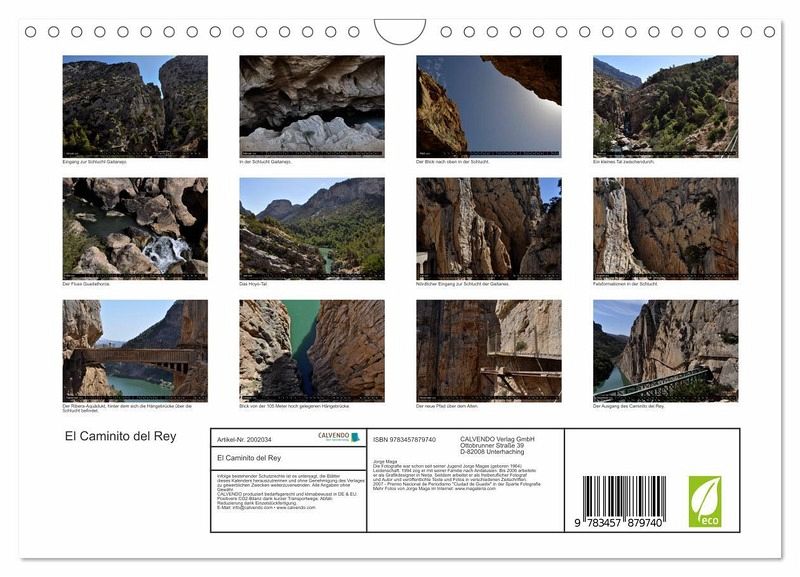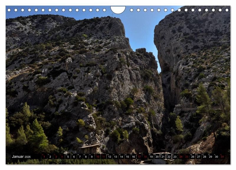 Bei den CALVENDO Editionen handelt es sich um eine streng limitierte Anzahl handverlesener Kalender, welche CALVENDO aufgrund ihrer Güte als außergewöhnlich wertvoll und typisch für ihr jeweiliges Sujet erachtet und dem Kalenderfreund daher besonders an Herz legen mochte.Der Caminito del Rey ist ein spektakulärer Wanderweg bei El Chorro in der Nähe von Málaga (Spanien). Ursprünglich als Versorgungsweg für die Stauseen errichtet, welche zur Wasserspeicherung und Stromerzeugung dienen, führt er durch mehrere bis zu 200 Meter tiefe Schluchten. Der Weg verdankt seinen Namen dem Besuch des Königs von Spanien bei der Fertigstellung im Jahre 1921. Im Verlauf der Jahrzehnte verfiel der Pfad und mutierte zum "gefährlichsten Klettersteg der Welt". Nach einer Sperrung aufgrund mehrerer Todesfälle wurde er schließlich von 2014 - 2015 für mehrere Millionen Euro aufwendig wieder hergestellt. Heraus gekommen ist ein beeindruckend aufregender Wanderweg der sich in teilweise 100 Metern Höhe an den senkrechten Felsen entlang schlängelt. Ein absolut lohnenswertes Ausflugsziel Andalusiens.