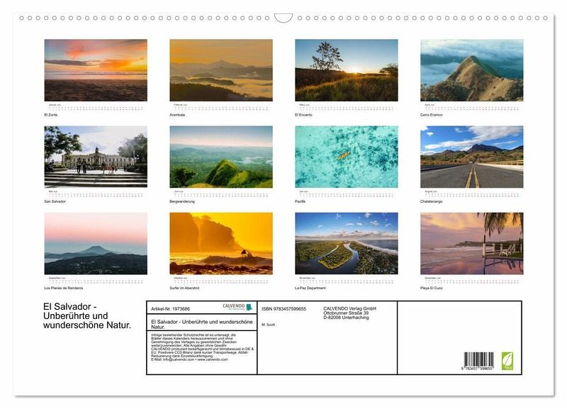 QUALITÄT - Hochwertiger Fotokalender mit 12 wunderschönen Motiven auf lichtbeständigem Bilderdruckpapier, robuste Spiralbindung mit Aufhängebügel.NACHHALTIG - deutliche Abfallreduzierung durch bedarfsgerechte Einzelstückfertigung, umweltfreundliches FSC-zertifiziertes Papier, Produktion in Deutschland, klimabewusste Logistik.PERFEKTES GESCHENK - Kalender für Freunde und Familie, für Kinder und Erwachsene, jung und alt, zu Weihnachten, Geburtstag oder zwischendurch.VIELFALT - Bildkalender in verschiedenen Formaten, z.B. DIN A5, DIN A4, DIN A3 sowie DIN A2. Ob Naturmotiv, Gemälde oder Fotos, ideal für ein persönliches Wohlfühlambiente.Zwölf harmonische Bilder des El Salvador. von Autor(in): Benjamin Lederer