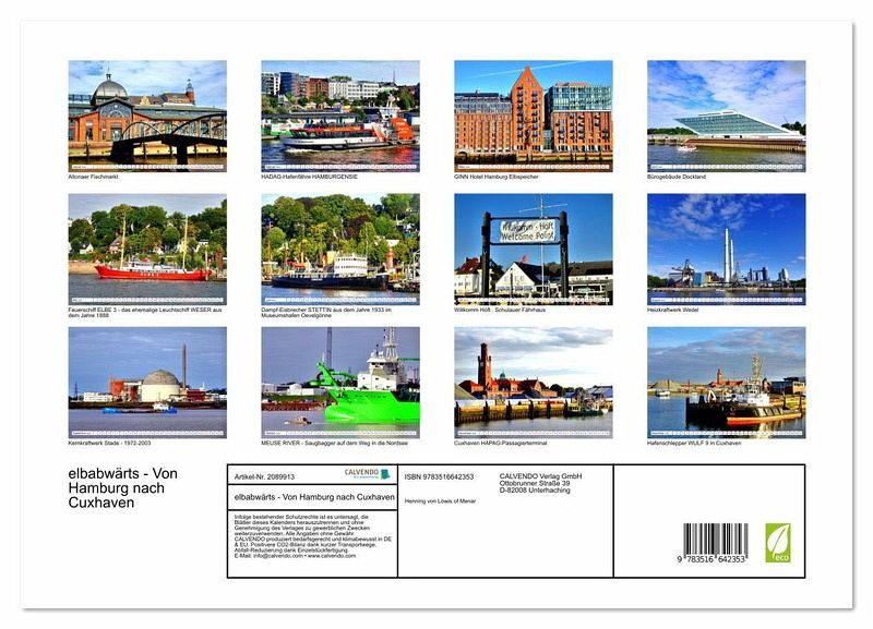 QUALITÄT - Hochwertiger Fotokalender mit 12 wunderschönen Motiven auf lichtbeständigem Bilderdruckpapier, robuste Spiralbindung mit Aufhängebügel.NACHHALTIG - deutliche Abfallreduzierung durch bedarfsgerechte Einzelstückfertigung, umweltfreundliches FSC-zertifiziertes Papier, Produktion in Deutschland, klimabewusste Logistik.PERFEKTES GESCHENK - Kalender für Freunde und Familie, für Kinder und Erwachsene, jung und alt, zu Weihnachten, Geburtstag oder zwischendurch.VIELFALT - Bildkalender in verschiedenen Formaten, z.B. DIN A5, DIN A4, DIN A3 sowie DIN A2. Ob Naturmotiv, Gemälde oder Fotos, ideal für ein persönliches Wohlfühlambiente.Highlights am Elbufer zwischen Hamburg und Cuxhaven von Autor(in): Henning von Loewis of Menar