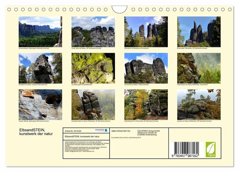 QUALITÄT - Hochwertiger Fotokalender mit 12 wunderschönen Motiven auf lichtbeständigem Bilderdruckpapier, robuste Spiralbindung mit Aufhängebügel.NACHHALTIG - deutliche Abfallreduzierung durch bedarfsgerechte Einzelstückfertigung, umweltfreundliches FSC-zertifiziertes Papier, Produktion in Deutschland, klimabewusste Logistik.PERFEKTES GESCHENK - Kalender für Freunde und Familie, für Kinder und Erwachsene, jung und alt, zu Weihnachten, Geburtstag oder zwischendurch.VIELFALT - Bildkalender in verschiedenen Formaten, z.B. DIN A5, DIN A4, DIN A3 sowie DIN A2. Ob Naturmotiv, Gemälde oder Fotos, ideal für ein persönliches Wohlfühlambiente.Faszinierende Formationen im Reich der Sandsteinfelsen beflügeln unsere Phantasie. von Autor(in): Evy Schäfer-Löbl