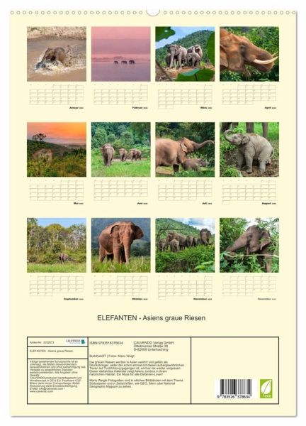 Die grauen Riesen werden in Asien verehrt und gelten als Glücksbringer. Jeder der schon einmal mit diesen außergewöhnlichen Tieren auf Tuchfühlung gegangen ist, wird es nie wieder vergessen. Dieser elefantöse Kalender zeigt Asiens Jumbos in ihrem natürlichen Habitat. Ein Muss für alle Elefanten-Lover!