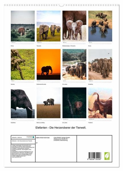 Dieser Kalender zeigt 12 atemberaubende Fotos von den wunderschönen Rüsseltieren. Mit jedem Monat können Sie ein weiteres tolles Motiv entdecken.