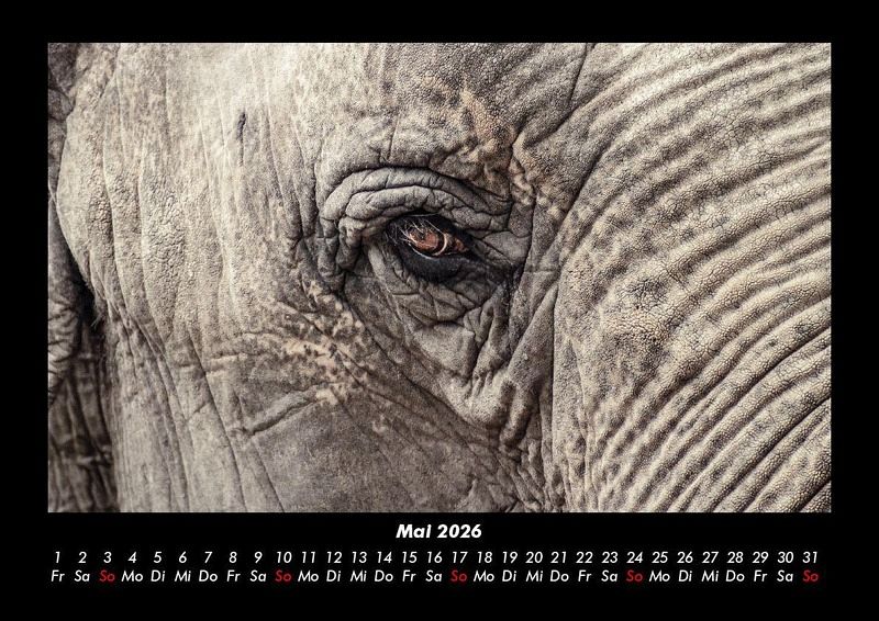 Elefanten - Die sanften Riesen Afrikas 2026 Motivkalender DIN A3 Vero-Kalender erhalten Sie mit Motiven aus den verschiedensten Themenbereichen wie Natur, Blumen und Landschaft, Tierwelt, Architektur, Reise und Urlaub, Technik, Automobil und Eisenbahn, Emotionen, Sport und Musik. Gedruckt werden die Monats-Kalender aus dem Vero Verlag auf hochwertigem Kalenderbogen in Premium-Qualität und verschiedenen Größen. Die Vielfältigkeit der Motive unserer Foto-Kalender ist dank der Zusammenarbeit mit kreativen Fotografen möglich.